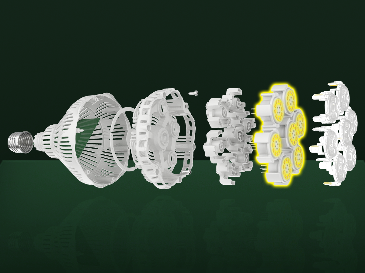 Adopted a non-conductive ceramic heat sink, and directly solder the LED chip on the ceramic, efectively reducing the thermal resistance between the LED PN junction and the surface of the heat sink,resulting in faster heat conduction and higher product reliability, producing a SANSl bub with higher light eficiency.