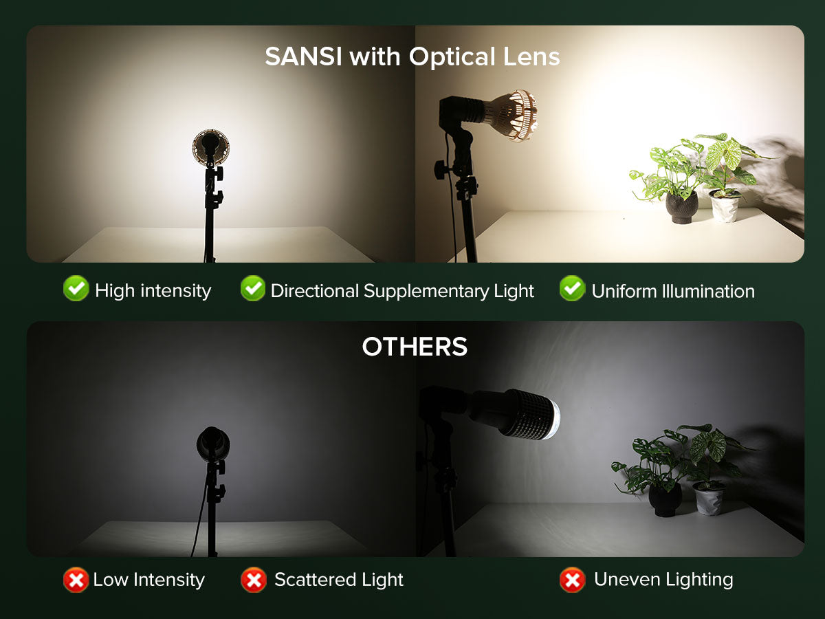 - HIGH BRIGHTNESS & ENERGY SAVING: PPF: 57umol/s, PPFD: 345μmol/s/㎡ @1ft ! Effectively help your plants or flowers grow faster and stronger! This SANSI 40W dimmable grow light bulb is equivalent to 600W traditional light bulb, providing 3800lm high brightness, save up to 93% electricity.