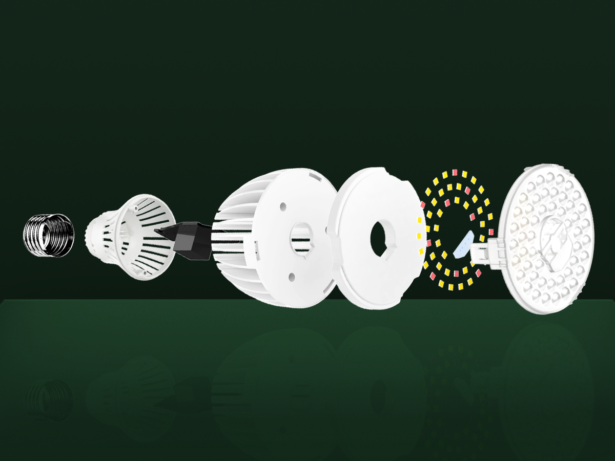 - High PPFD: The PPFD of the 30W grow light bulb is 220.42 μmol/s/㎡ @ 1ft, effectively promotes plant growth, and improves crop yield and quality.