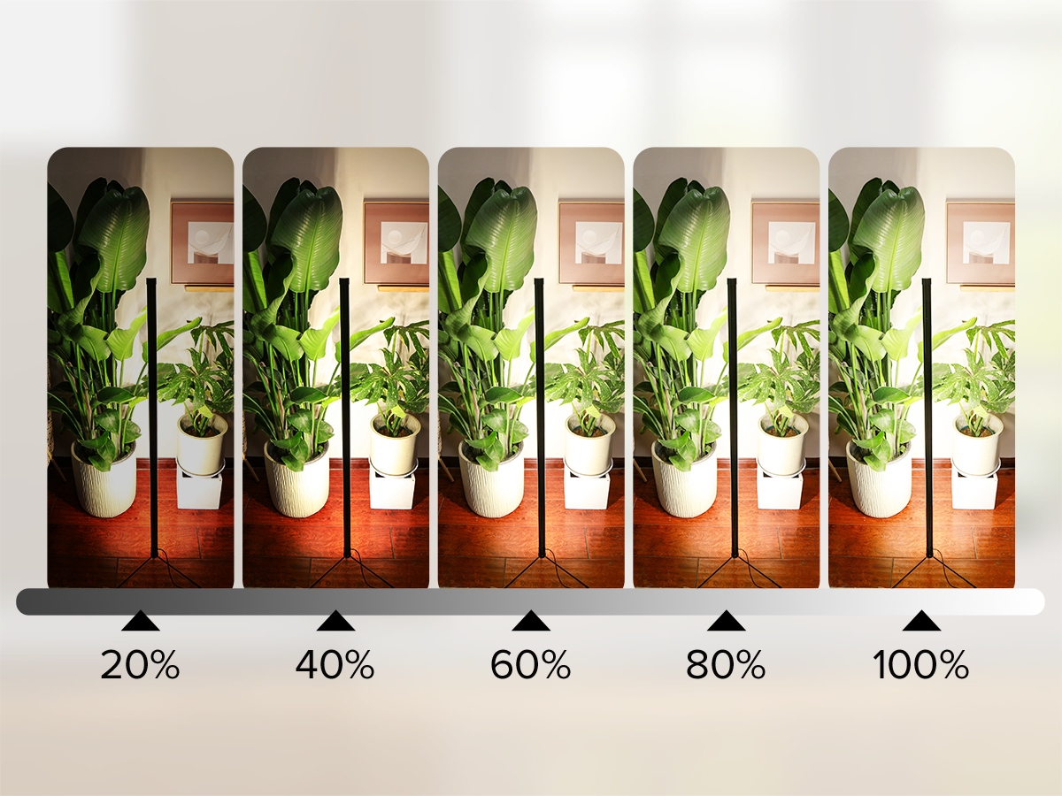 - Five-Level Dimming: This vertical grow light features five levels of dimming (20-40-60-80-100brightness, adjustable in 20 increments), allowing for easy adjustment based on plant needs. This provides flexibility and precision, meeting the diverse needs of tall plants and large plant stands and walls.