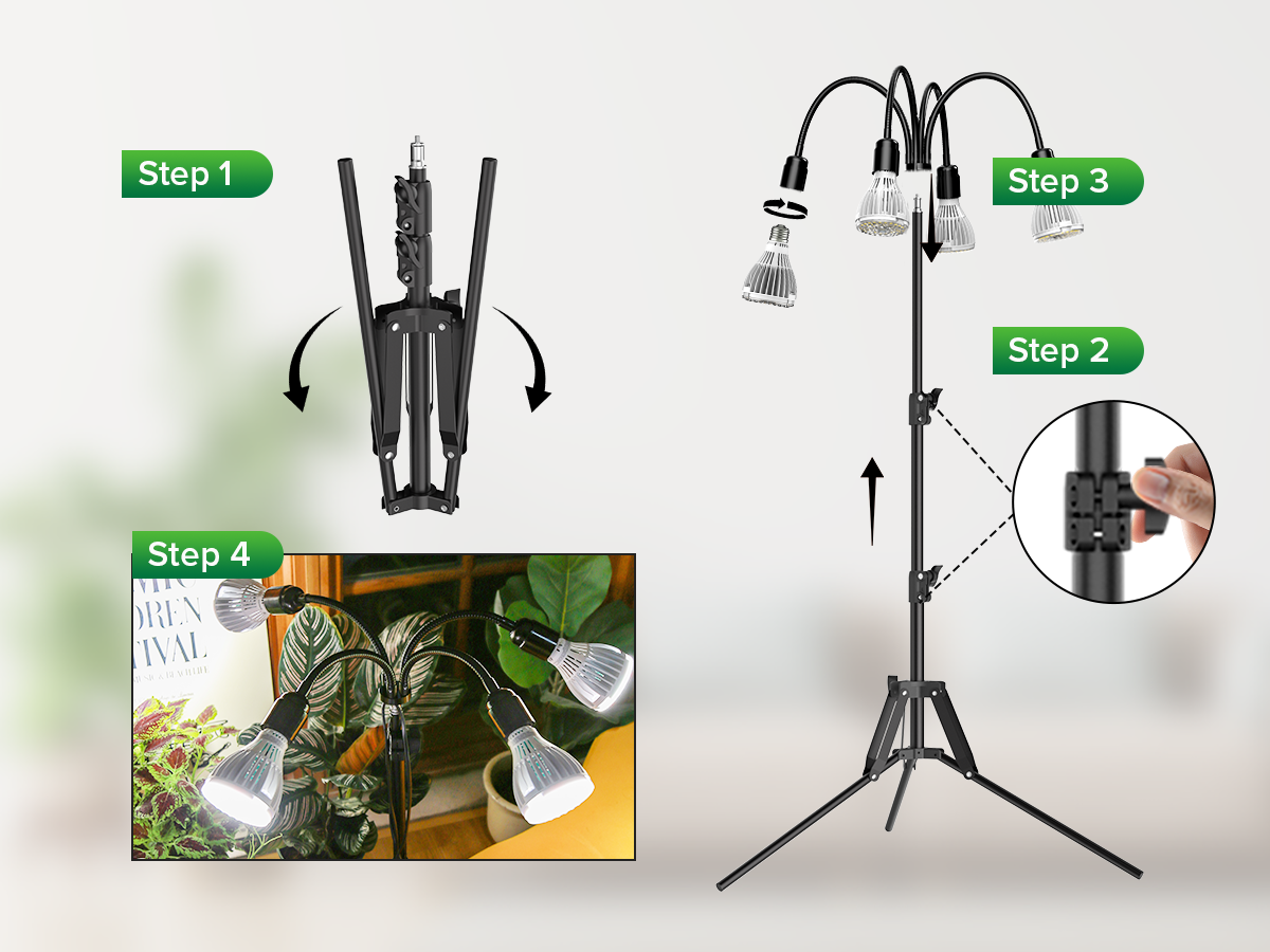 - Upgraded Tripod & 360° Gooseneck: The reinforced stand with extended tripod feet enables the tripod to stand stable and hold the large size PAR25 bulbs. SANSI plant light is equipped with a flexible gooseneck, which allows you flexibly adjust the light to make every plant covered by 360° surrounding light.