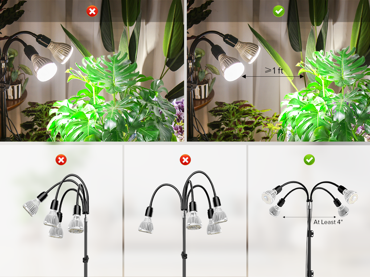 - The bulbs should not be placed in one direction or stacked together. Leave enough space between the bulbs, at least 4 inches apart.