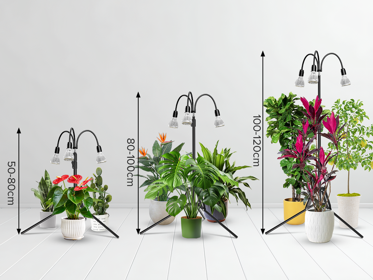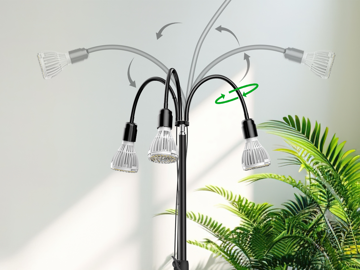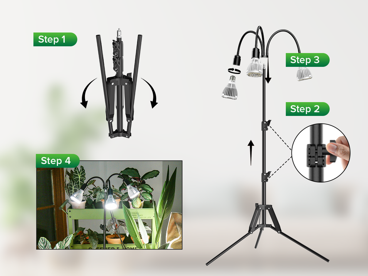 - Upgraded Tripod & 360° Gooseneck: The reinforced stand with extended bracket feet enables the tripod to stand stable and hold the large size PAR25 bulbs. SANSI plant light is equipped with a flexible gooseneck, which allows you flexibly adjust the light to make every plant covered by 360° surrounding light.