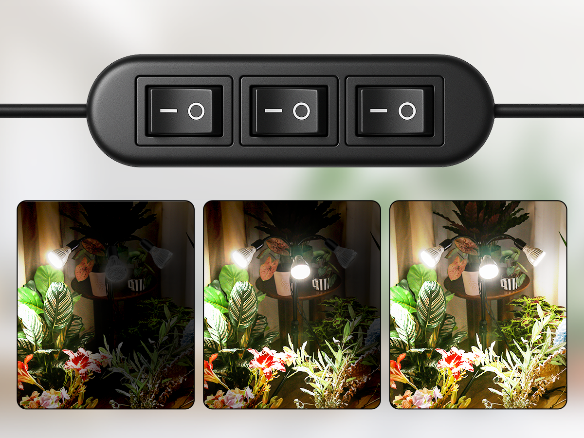 - High PPFD: The PPFD of every 30W grow light bulb is 220.42μmol/s/㎡ @ 1ft. 3 pieces 30W LED grow light bulbs are convenient to be adjusted in direction, which enables the light to cover more indoor plants.