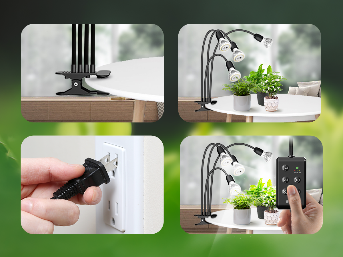 Easy to install the grow light with the stable metal clip on the table or shelf and allows you flexibly adjust the light to the required plant. Furthermore, there’s sponge pads to prevent scratching furniture.