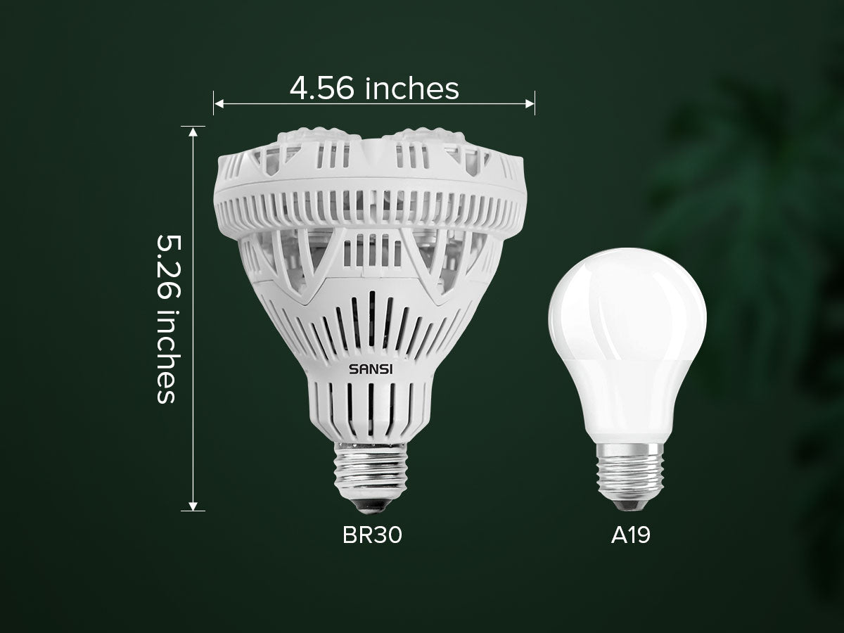 Heavy duty, size of BR30, 1 LB, heavier andwider than ordinary bulb. For betterventilation and heat dissipation, it is notrecommended to be used in tightly closedfixtures.