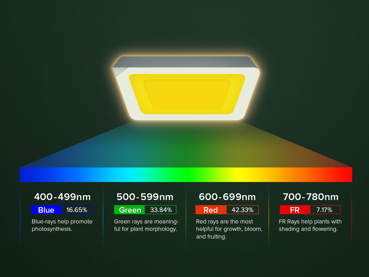 - 4000K DAYLIGHT: Imitate the solar spectrum, customize a more ideal full life cycle full spectrum supplementary light program, covering the entire visible spectrum of 400nm-780nm; Color rendering index Ra is close to 100, infinitely close to natural light, suitable for every cycle of plant growth, effectively promotes plant growth, and improves crop yield and quality.