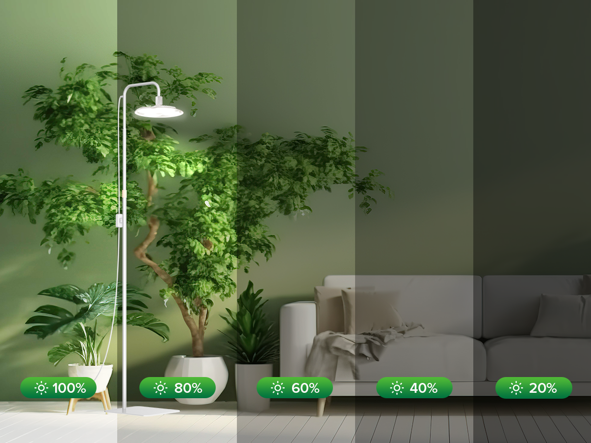 With the included remote, effortlessly adjust the brightness levels from the comfort of your chair. Select from 5 dimming levels ranging from 20% to 100%, tailored to your plants' specific requirements.