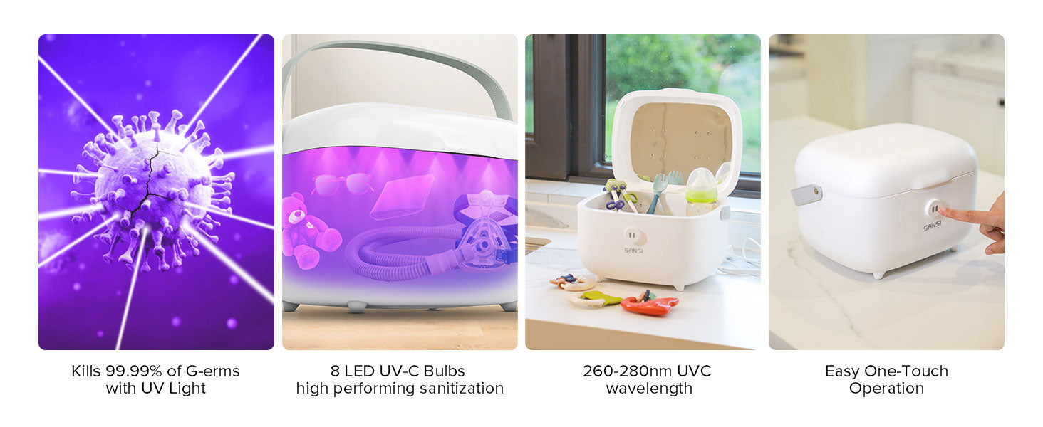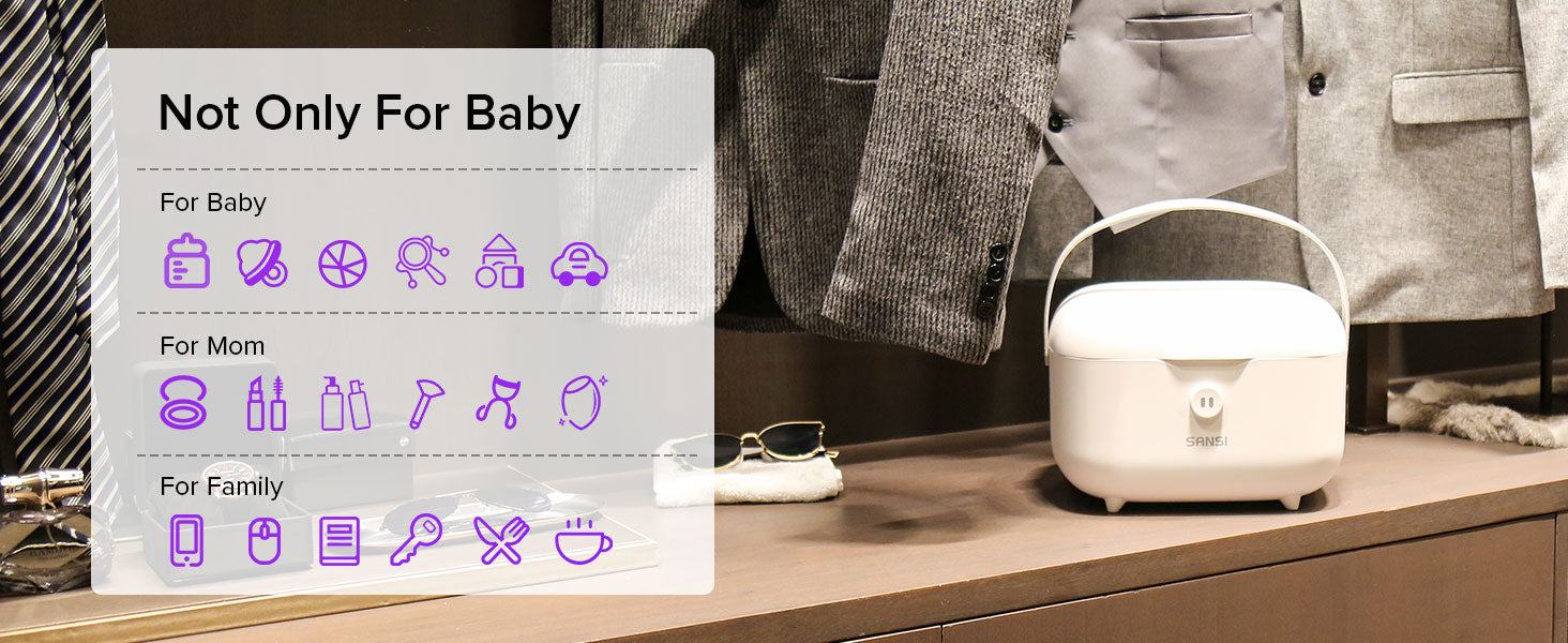 • 10W SANITIZES IN JUST 5 MINUTES: All your family's essentials like baby feeding gear, kid's toys, keys, phones and accessory's can be efficiently cleaned with this box in just 5 minutes.,Which is currently the fastest box on the market. No need to turn off your phone.