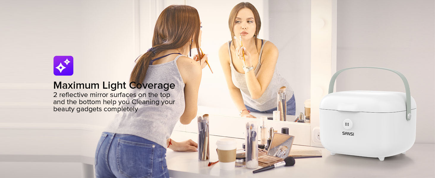 • HIGH EFFICIENCY: This UV light sanitizer box is surrounded by 24 UVC LED Chips, which are built-in stainless steel interior that can be highly reflective in 360-degree cleaning to clean items more efficiently up to 99.99%.