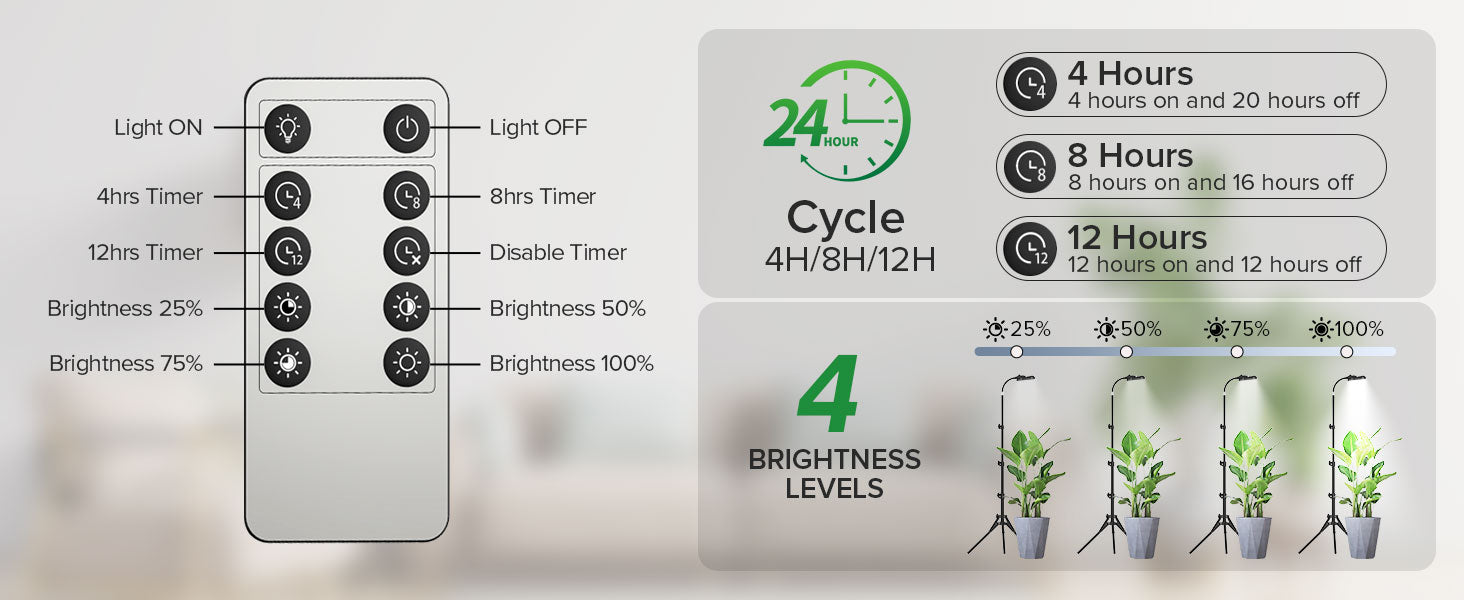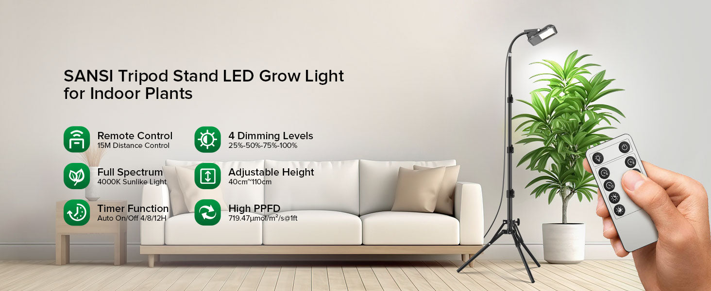 SANSI 45 W LED Plant Lamp with Stand, Full Spectrum Plant Light with 4/8/12H Timer, 4 Brightness Dimmable & 16-43 Inch Height Adjustable, Grow Lamp with Remote Control for Indoor Plants.