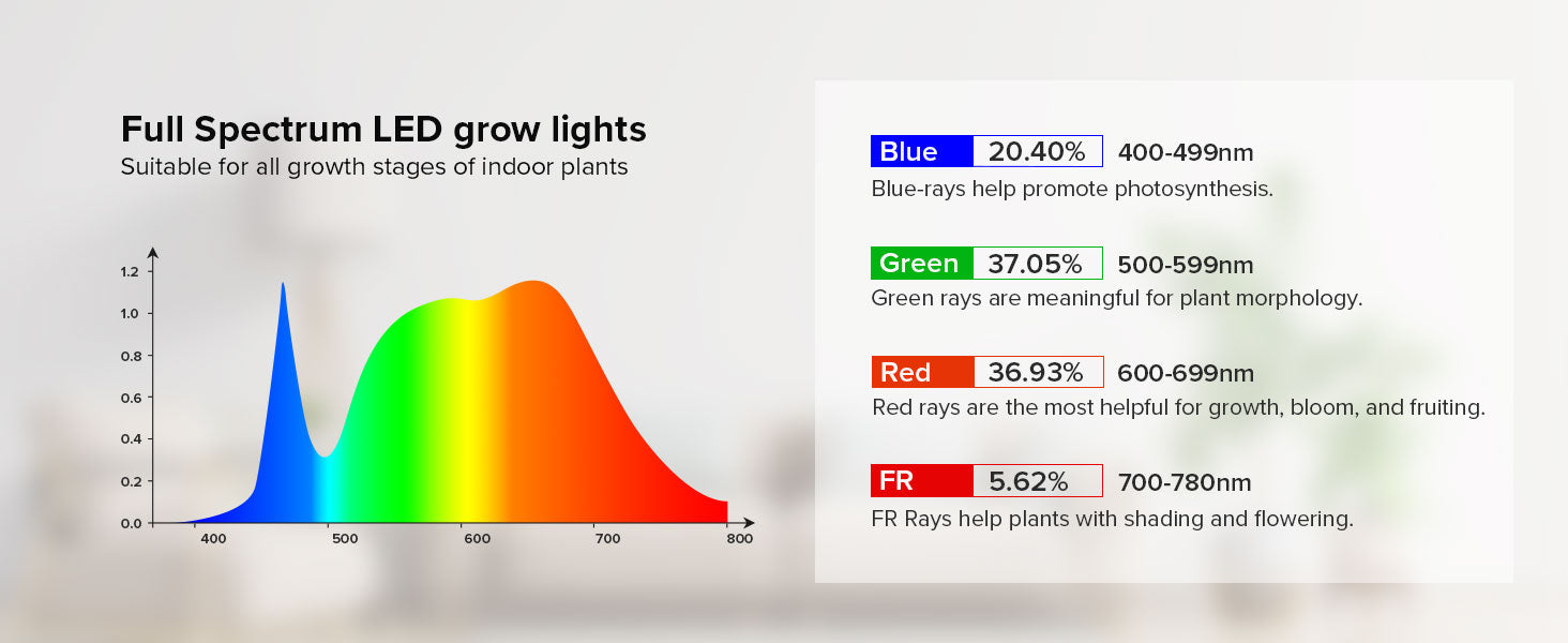 - VOLLES SPEKTRUM + 660 NM ZUSATZLICHT: Angepasstes rotes und weißes Vollspektrum, realisiert ein idealeres Vollspektrum-Zusatzlichtprogramm für den gesamten Lebenszyklus, das das gesamte sichtbare Spektrum von 400 nm bis 780 nm abdeckt; und rotes Licht hilft bei Blüte und Fruchtbildung und verlängert die Blütezeit, steigert die Produktion.