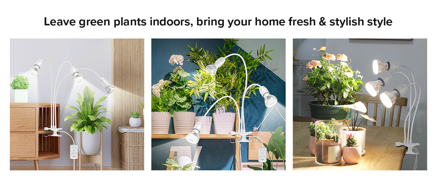 - Installazione e applicazione: Grazie al design dell'attacco E27, le lampadine sono intercambiabili con questo prodotto. Attenzione: 1) La potenza massima di sicurezza è di 10 W per ogni testa. 2) Tenere il braccio della lampada sopra la clip durante l'installazione. 3) Solo per illuminazione orticola.