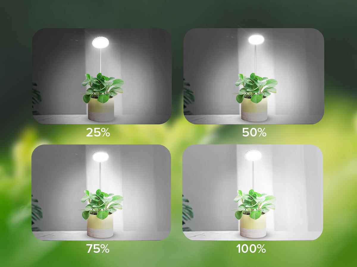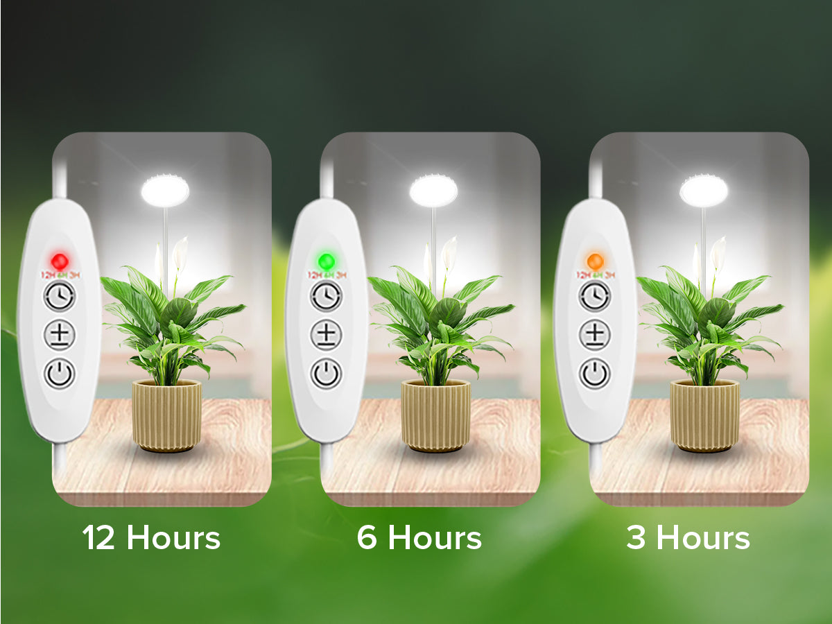- Temporizzazione automatica e 4 modalità di regolazione della luminosità: 3 modalità timer (acceso per 3/6/12 ore e spento per 21/18/12 ore) garantiscono un'illuminazione uniforme e mantengono automaticamente il programma di illuminazione durante le vacanze o i giorni feriali, eliminando il funzionamento manuale. Quattro impostazioni di luminosità (25%, 50%, 75% e 100%) consentono di personalizzare la luminosità in base alle esigenze specifiche delle piante e alla fase di crescita, prevenendo al contempo ustioni.