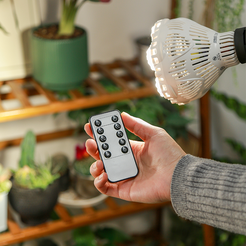 - Telecomando e timer: ecco la massima praticità per le tue esigenze di giardinaggio indoor: una lampada da coltivazione con telecomando! Con il telecomando incluso, puoi controllare facilmente i tempi e i livelli di luminosità dalla comodità della tua sedia. Scegli tra cicli di temporizzazione di 4, 8 o 12 ore e seleziona tra quattro livelli di luminosità che vanno dal 25% al 100%, personalizzati in base alle esigenze specifiche delle tue piante. Non dovrai più spostare le piante o la lampadina: usa semplicemente il telecomando per creare l'ambiente ideale. In caso di interruzione di corrente o di scollegamento della spina, la funzione timer verrà disattivata. Sarà necessario reimpostare la funzione timer.