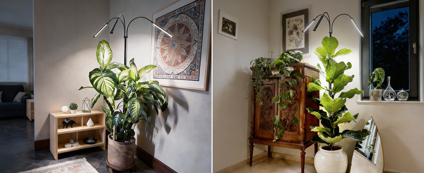 - 360° Rotatable Gooseneck: The three-section flexible gooseneck plant lights for indoor growing head supports 360° rotation, allowing free bending for precise light projection and effectively expanding illumination coverage for large plants. With a CRI of 95, it accurately renders plant colors for easier health monitoring. Eliminating fixed-angle limitations of single-head designs, far more flexible for targeted lighting.