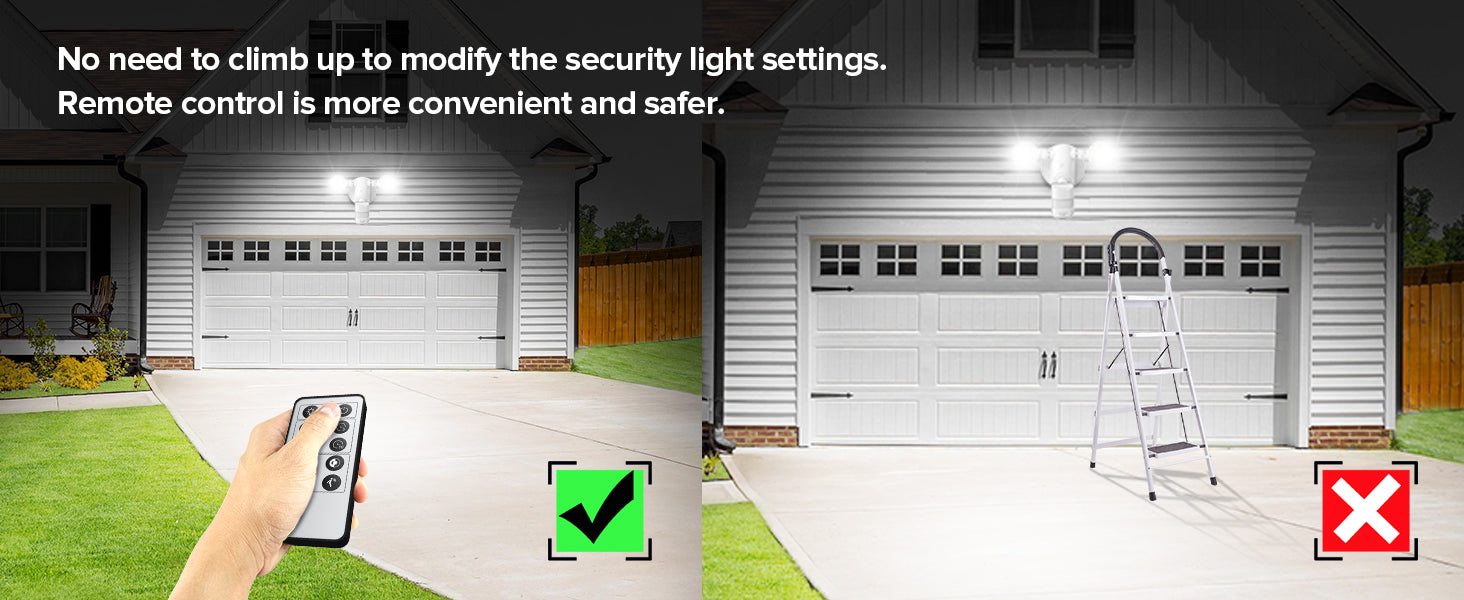 - Upgraded remote control: Equipped with a remote control, you can control the security light on/off/timing/mode. The remote control sensing distance is greater than 30M, reducing the inconvenience caused by climbing the ladder.