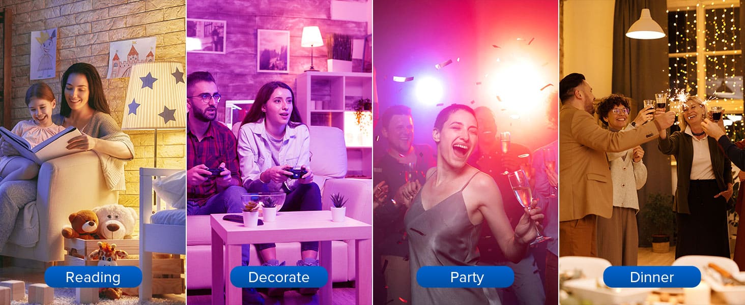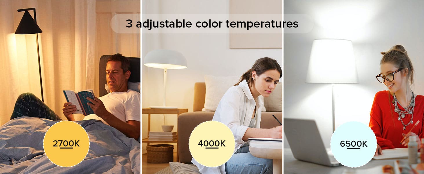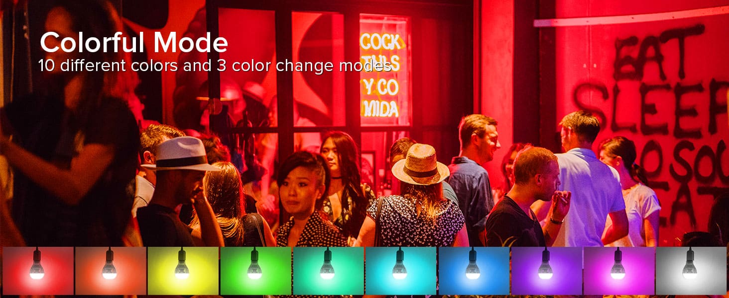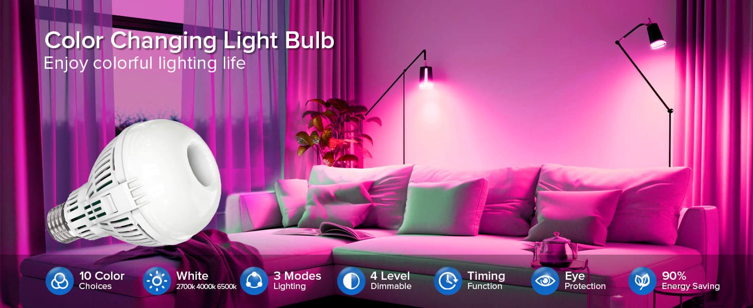 - COLOR CHANGING LED LIGHT BULB: The bulbs are available in 10 colors and 3 dynamic lighting modes (smooth, flash, fade) for a better festive atmosphere, such as Halloween, Christmas, New Year. It also provides customers with white light with adjustable color temperature(2700k, 4000k, 6500k) to meet any usage needs you have.