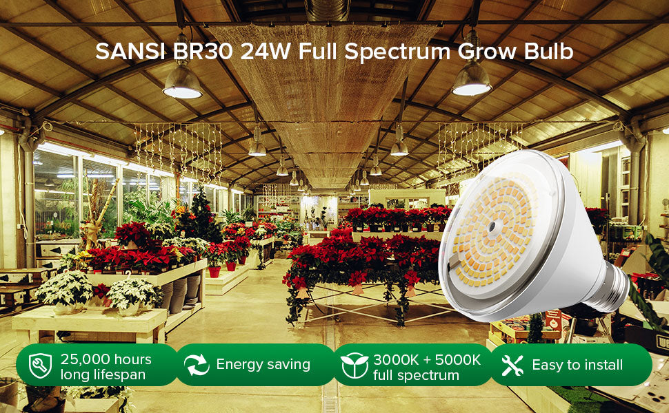 SANSI BR30 24W grow bulb can provide 120° wider beam angle and that enables you to grow more plants together for one time.