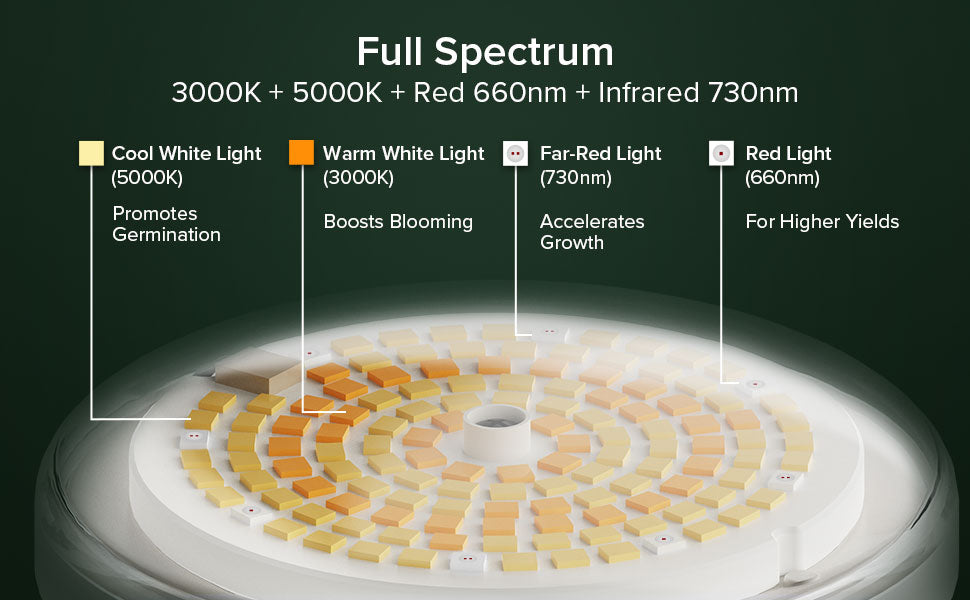 Through secondary light distribution, a more scientific and efficient optical design, the grow light provides higher and uniform output light efficiency for plants.