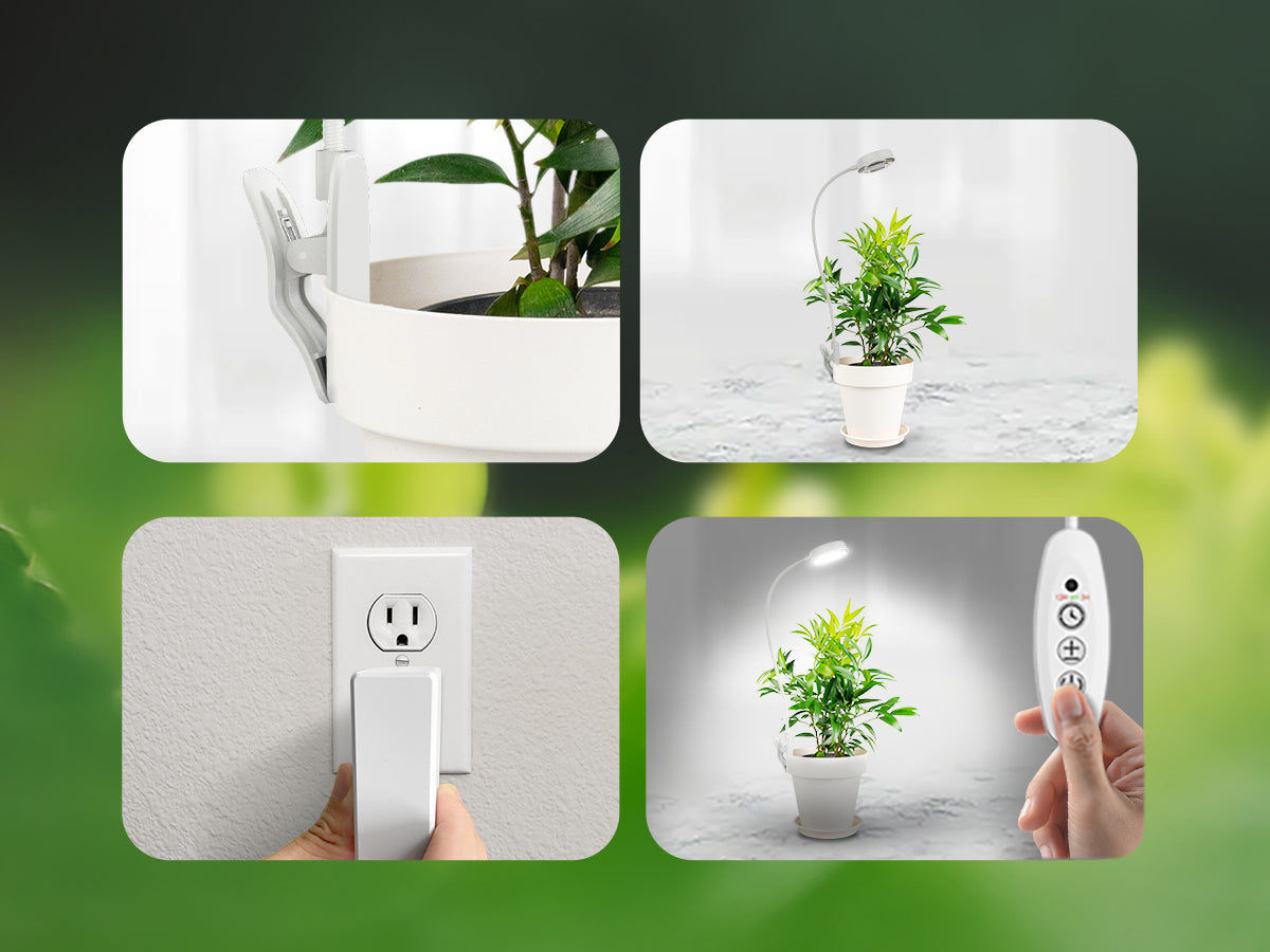 - Auto Timing & 4 Brightness Adjustment Modes:3 timer modes (on for 3/6/12 hours and off for 21/18/12 hours) ensure even lighting and automatically maintain the lighting schedule during holidays or weekdays, eliminating manual operation. Four brightness settings (25%, 50%, 75%, and 100%) allow you to customize the brightness to your plants' specific needs and growth stage while preventing burns.