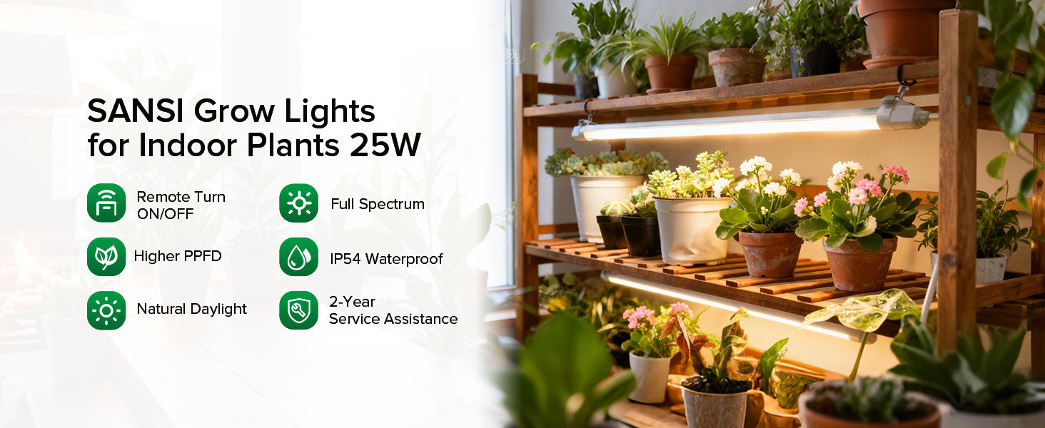 SANSI Grow Lights for Indoor Plants, 25W Plant Lights for Indoor Growing, 2FT 4000K Full Spectrum, T8 LED Grow Light Strips with 4-Level Dimmable, Auto On Off 4 8 12 Hrs Remote Control, IP54, White.