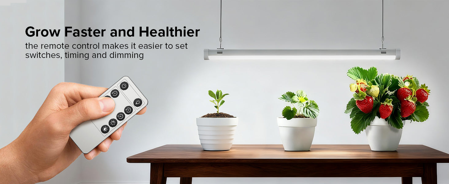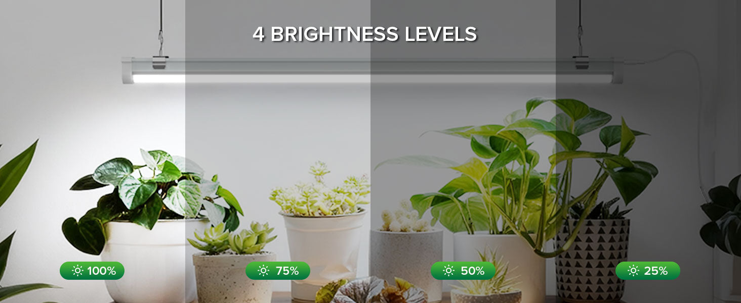 - 4/8/12 HRS REMOTE TIMER & 4 DIMMING LEVELS: This plant light comes with a remote control with 3 modes cycle timing function which stays on for 4/8/12 hours and off for 20/16/12 hours. The Grow lights for indoor plants full spectrum offer 4 level brightness settings to different plants requirements ranging from 25%, 50%, 75% to 100%.